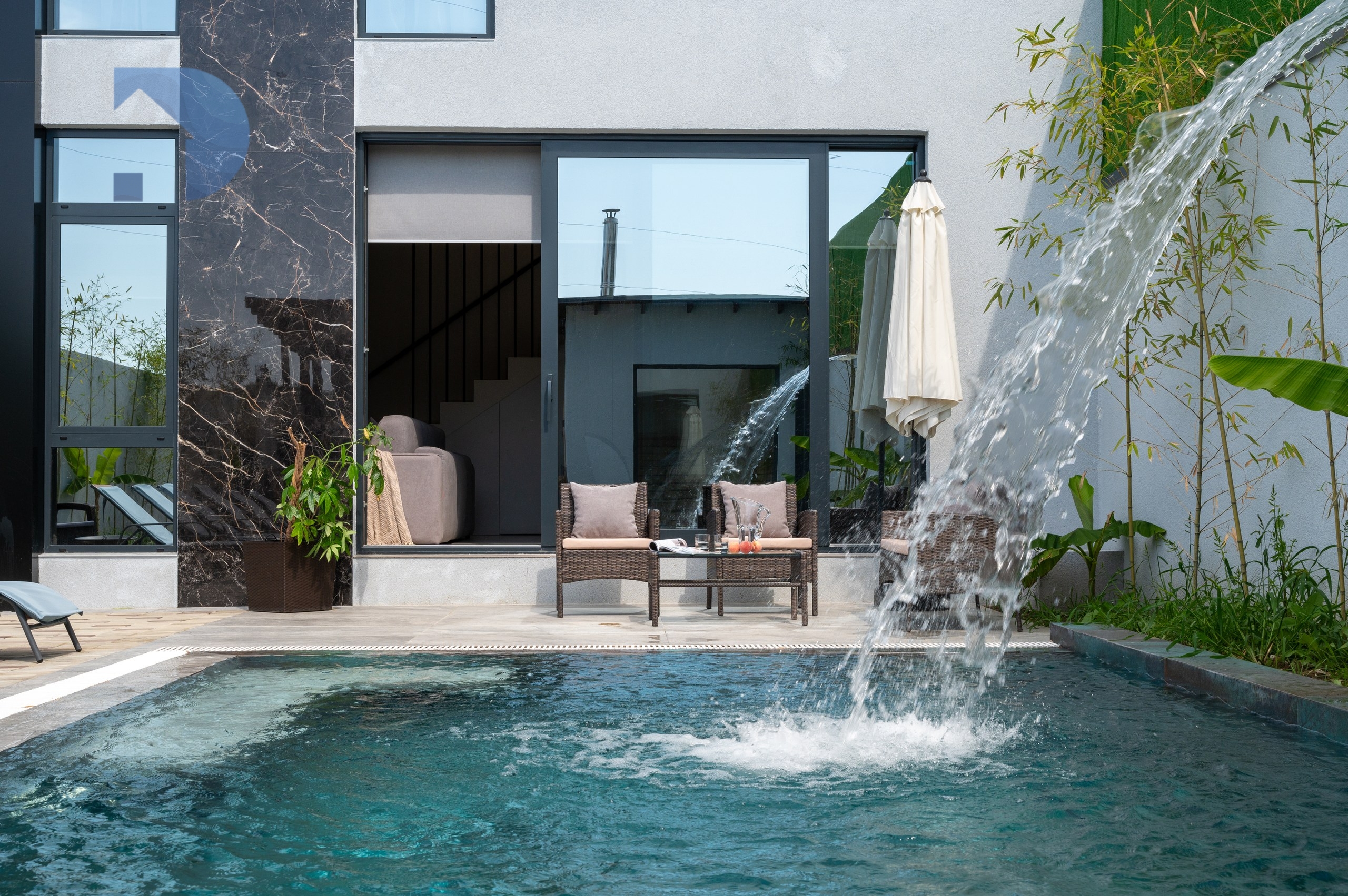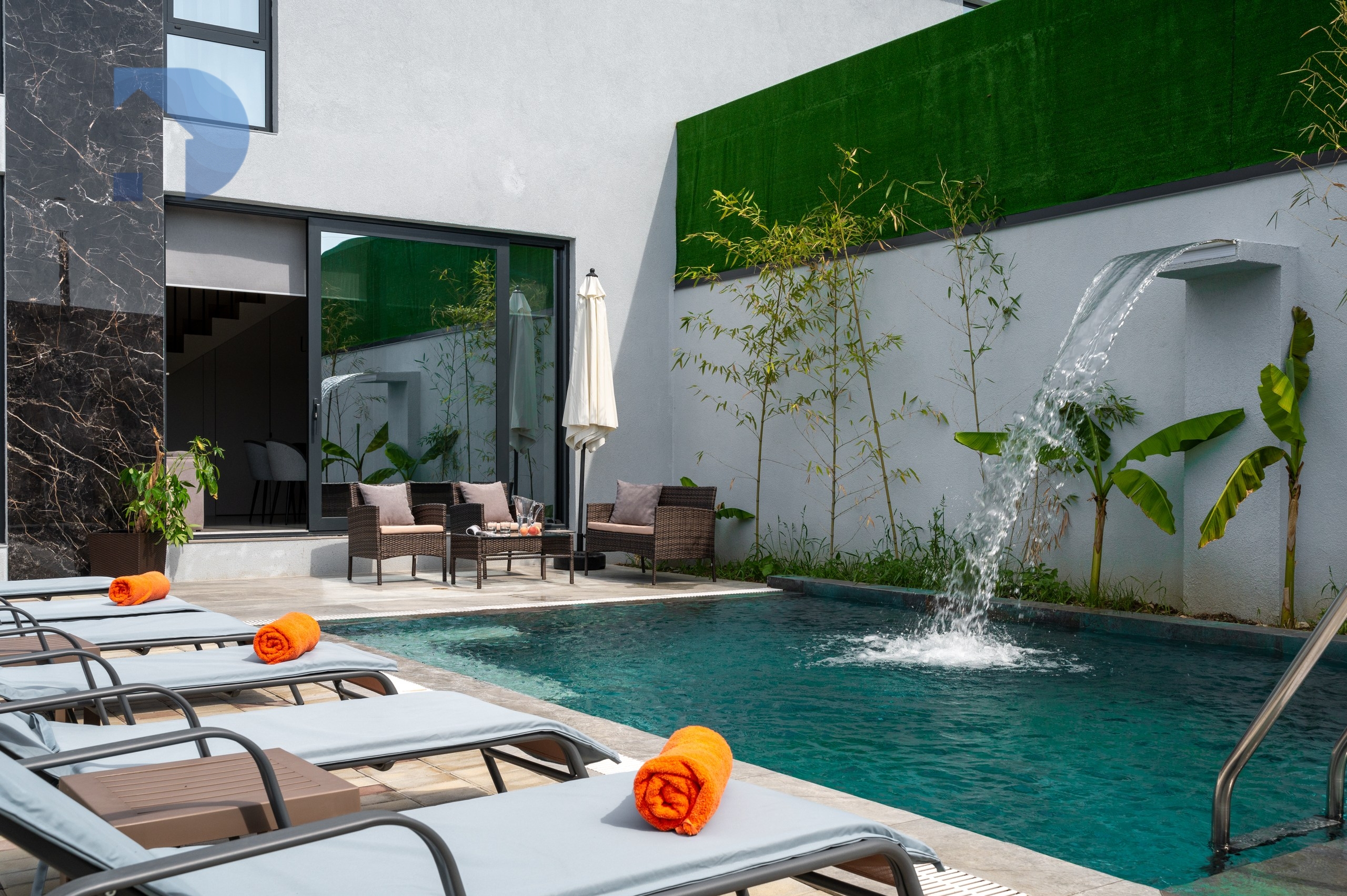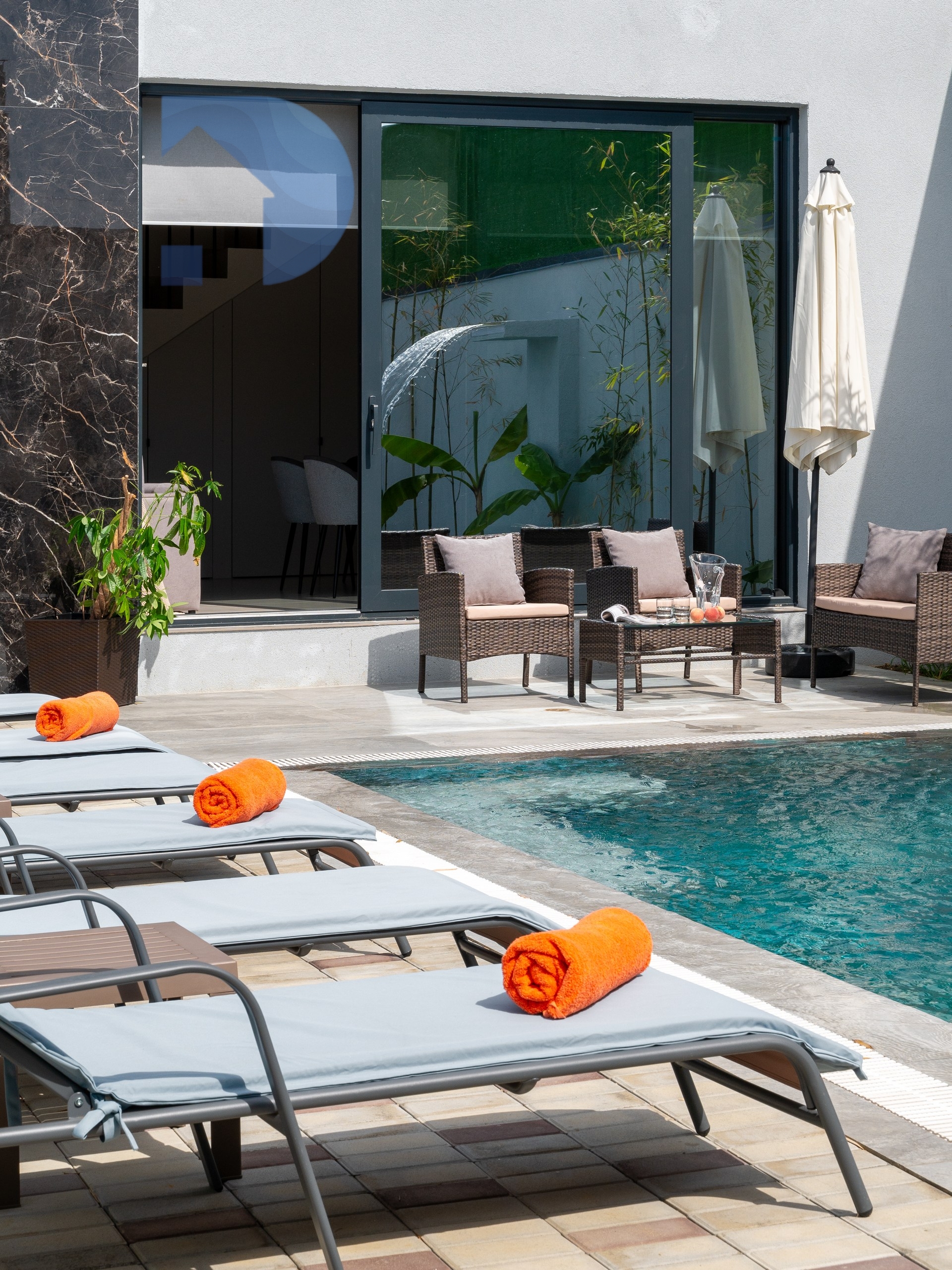 Бассейн, баня на дровах, зона отдыха.